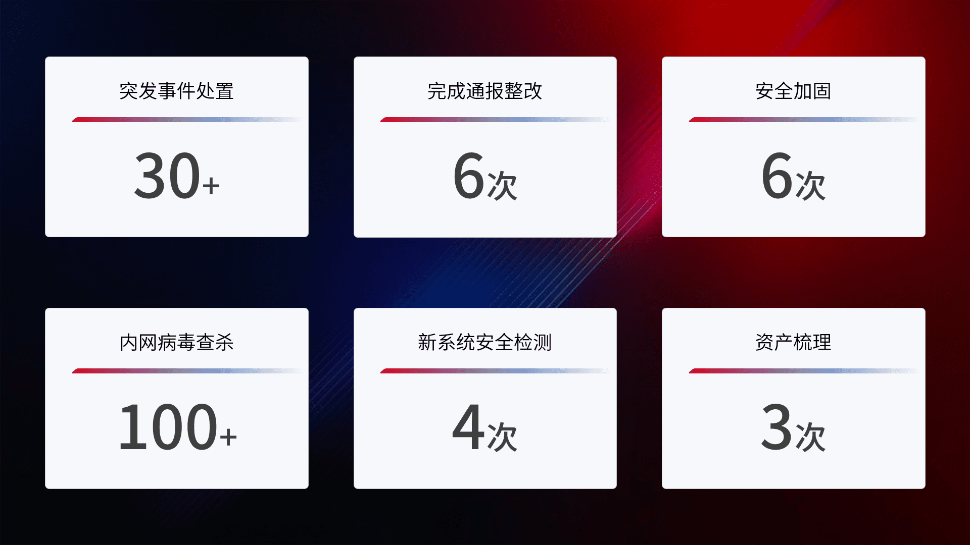 网络安全加固与风险管理:通过技术加固手段,,,如加强区域隔离,,,,缩减攻击内网横向移动的范围;优化现有网络安全管理制度,,,,降低网络威胁暴露面,,,,减少被黑客攻击的可能性。。