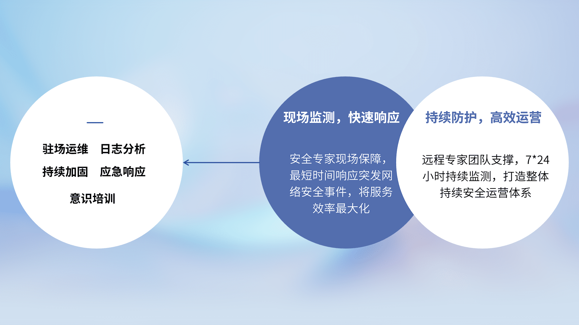7X24小时持续监测安全事件,保持安全策略有效性,降低资产脆弱性风险,,,,精准拦截黑客攻击,,,减少被黑客利用的机会,,,第一时间遏制,,,降低损失。。。